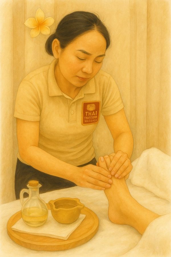 Thai Oil Massage uses traditional Thai techniques combined with natural oils to gently relieve muscle tension, improve blood circulation, reduce stress, and promote deep relaxation.
